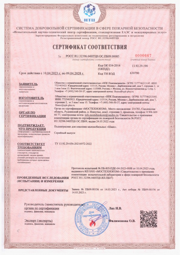 Для транспортировки человека весом более 70 кг рекомендуется к применению в комплекте с тележкой для спасения маломобильных «Шанс» .